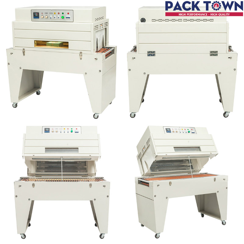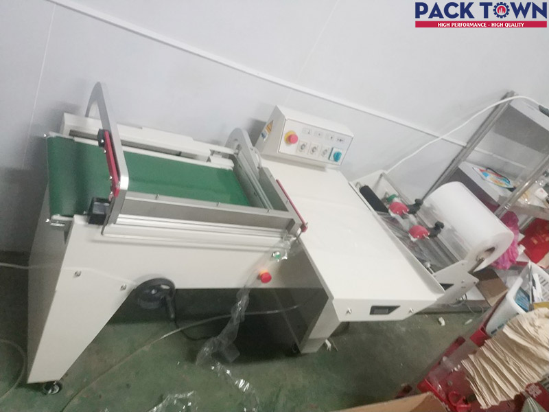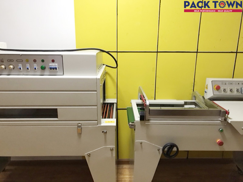 Bộ Máy Cắt Màng Bán Tự Động Kiểu Chữ L Khí nén chân cao DFQC-450 + Máy co màng BS-A450
