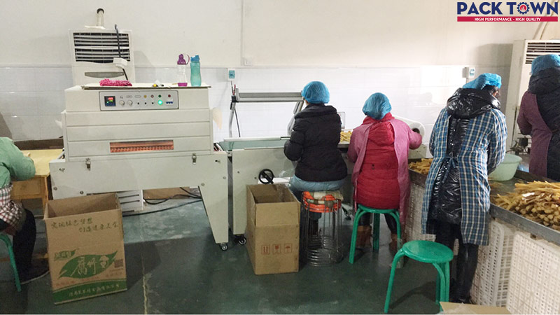 Cách sử dụng máy cắt màng bán tự động kiểu chữ L khí nén chân cao DFQC-450 + Máy co màng BS-A450: