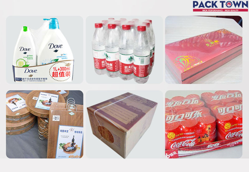 Thiết bị chuyên sử dụng màng PE, POF, PVC, PP để đóng gói các sản phẩm dạng lon, chai như nước khoáng, nước hoa quả, bia, rượu,…