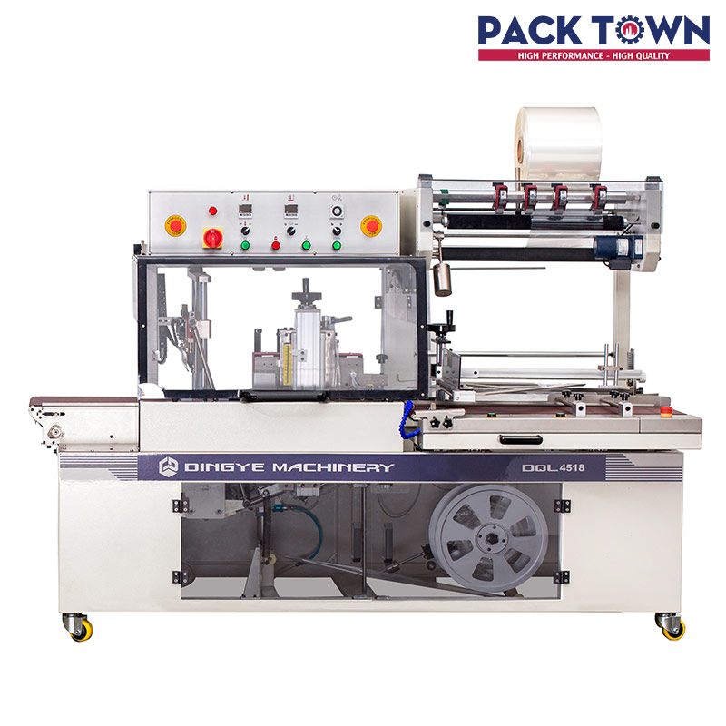 Máy cắt màng tự động kiểu chữ L DQL-4518 phù hợp với các sản phẩm chất liệu POF, PE, PVC,… có độ cao tối đa 450mm.