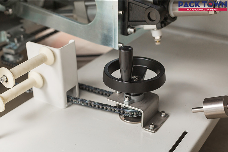 Máy trang bị thêm bánh xe lớn với chức năng tự động thu gom các màng co thừa giúp bảo vệ môi trường vừa tiết kiệm thời gian dọn dẹp sau đóng gói.