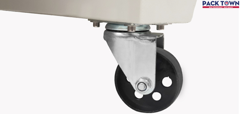 Chân máy được gắn bốn bánh xe giúp máy di chuyển dễ dàng hơn.