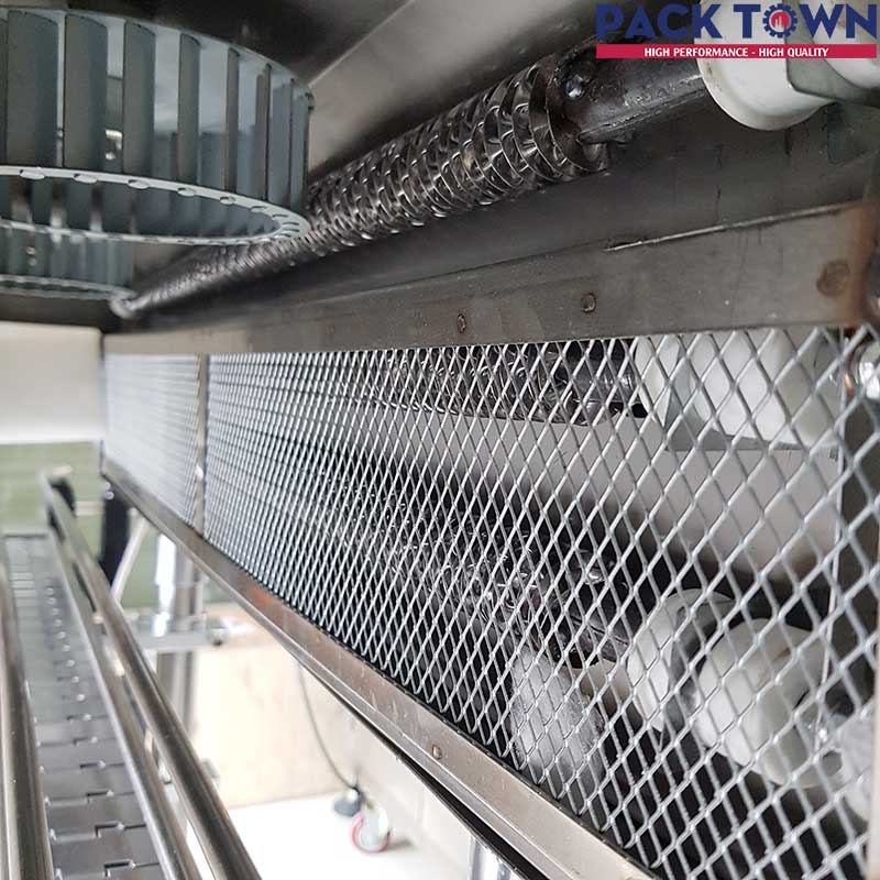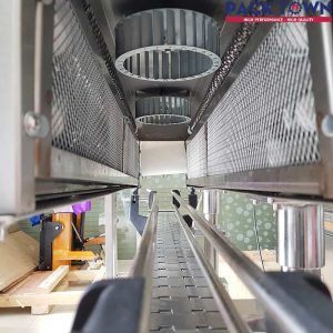 Máy có kích thước buồng nhiệt tương đối lớn, thích hợp sử dụng cho những dây chuyền sản xuất các loại hàng hóa như: nước ngọt, thiết bị vệ sinh, thiết bị văn phòng phẩm, đặc biệt là các loại hàng hóa sử dụng màng co PE,…