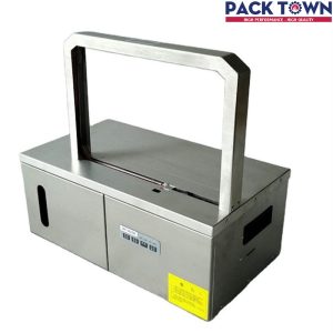 Máy đóng đai thùng dây đai OPP để bàn có cấu tạo nhỏ gọn, hoạt động tự động giống như một chiếc máy đai thùng.