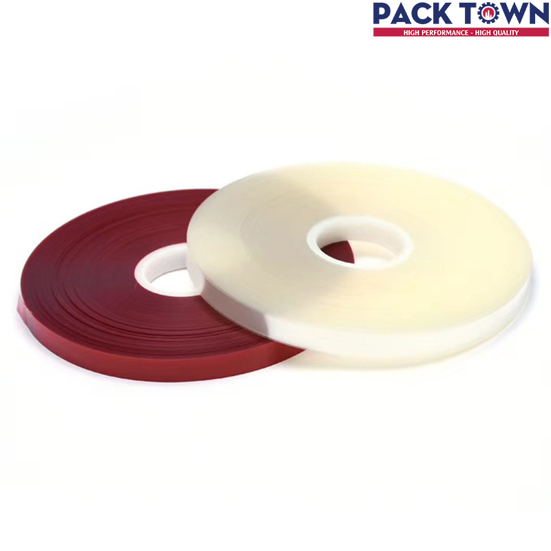 Máy sử dụng dây đai OPP với hai loại màu sắc chủ yếu là đỏ và trắng.