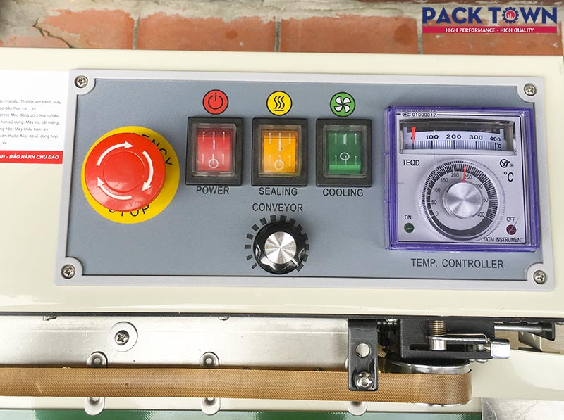 Có thể cài đặt nhiệt độ hàn túi của máy bằng đồng hồ chỉnh nhiệt.