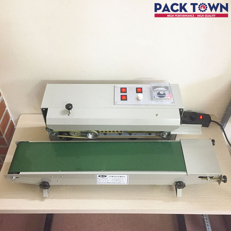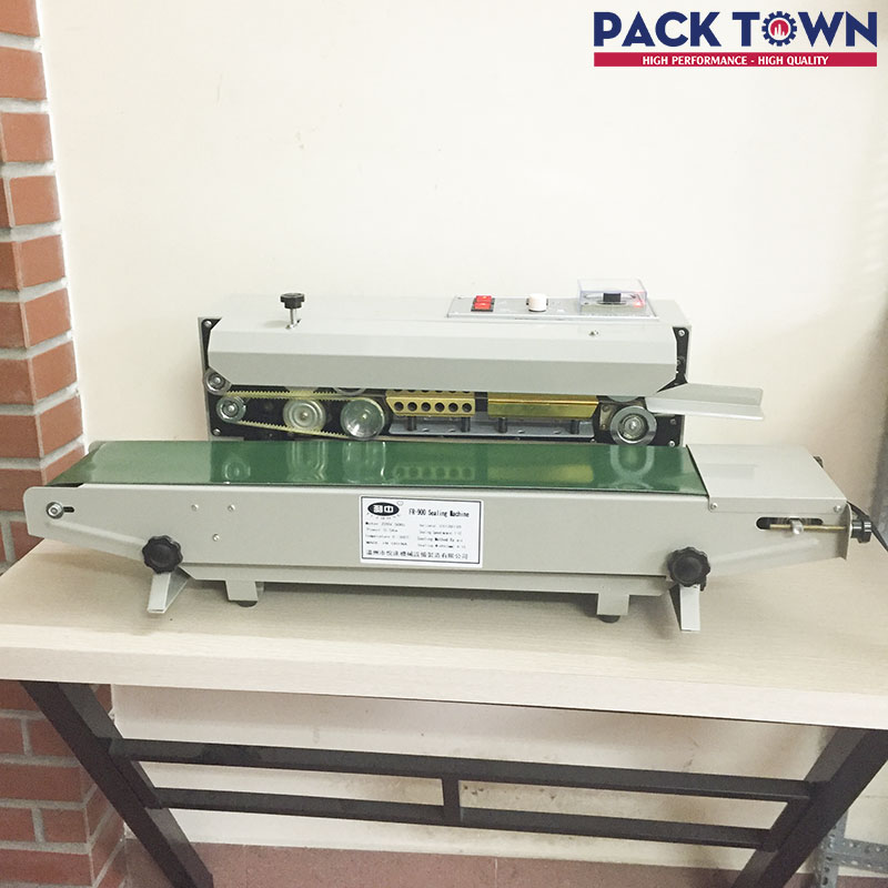 Máy hàn miệng túi liên tục FR-900YZ thích hợp để đóng gói các loại túi nhựa, túi giấy kraft, túi màng co, túi composite, túi bạc,…